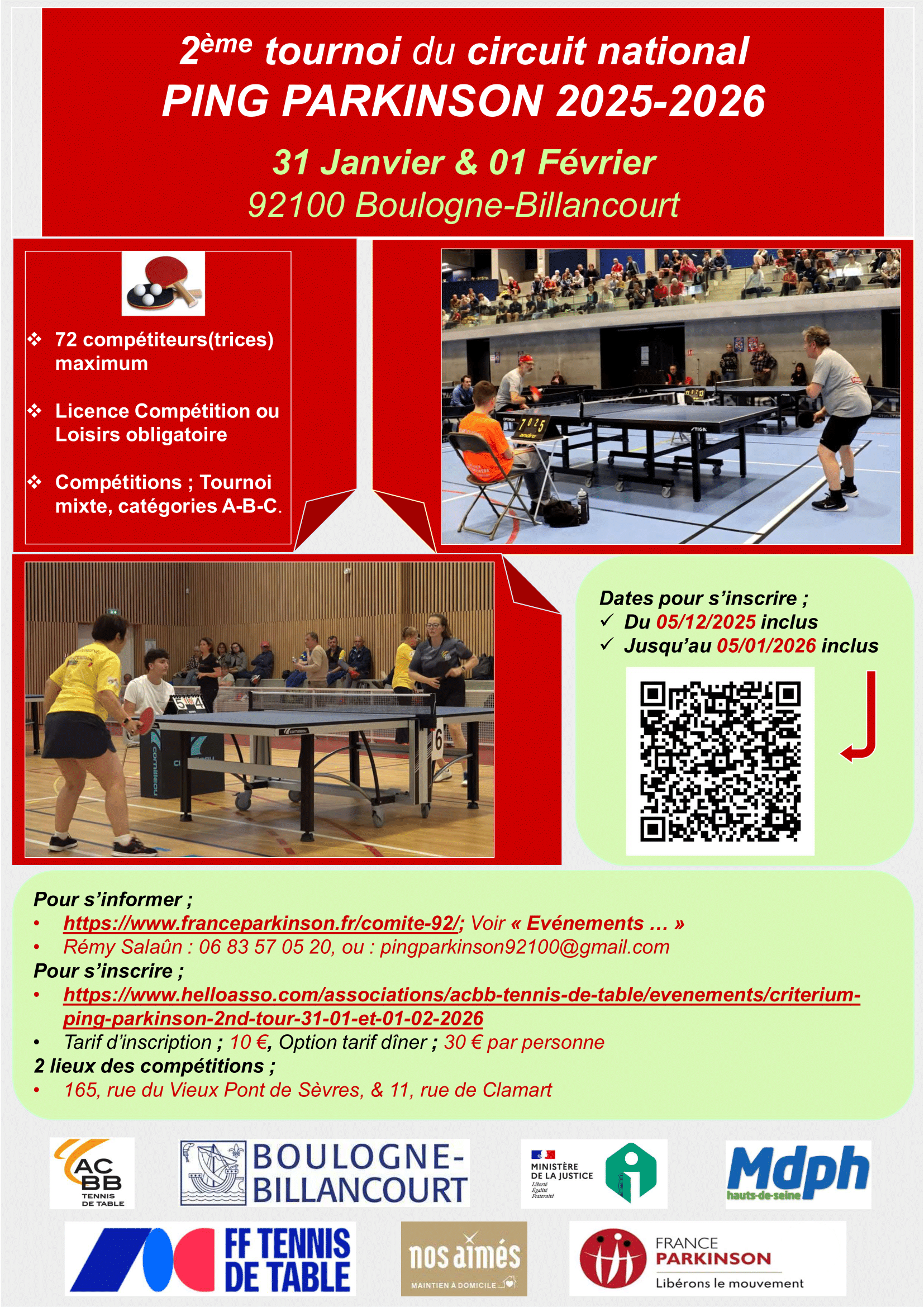 Un tournoi ouvert aux licencié(e)s FFTT et adhérent(e)s à France Parkinson